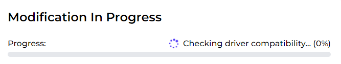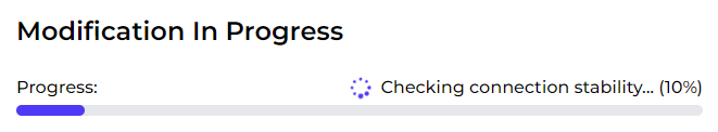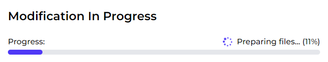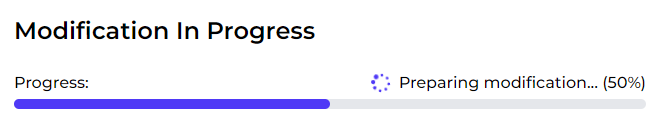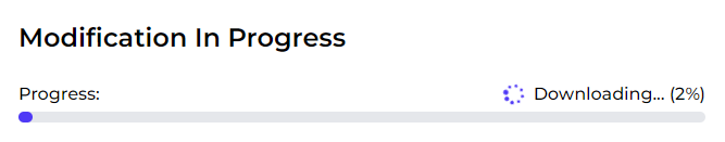 You will start to see various progress bars indicating the steps, firstly, the modification package is downloaded from our system. This may take some time depending on your internet speed.