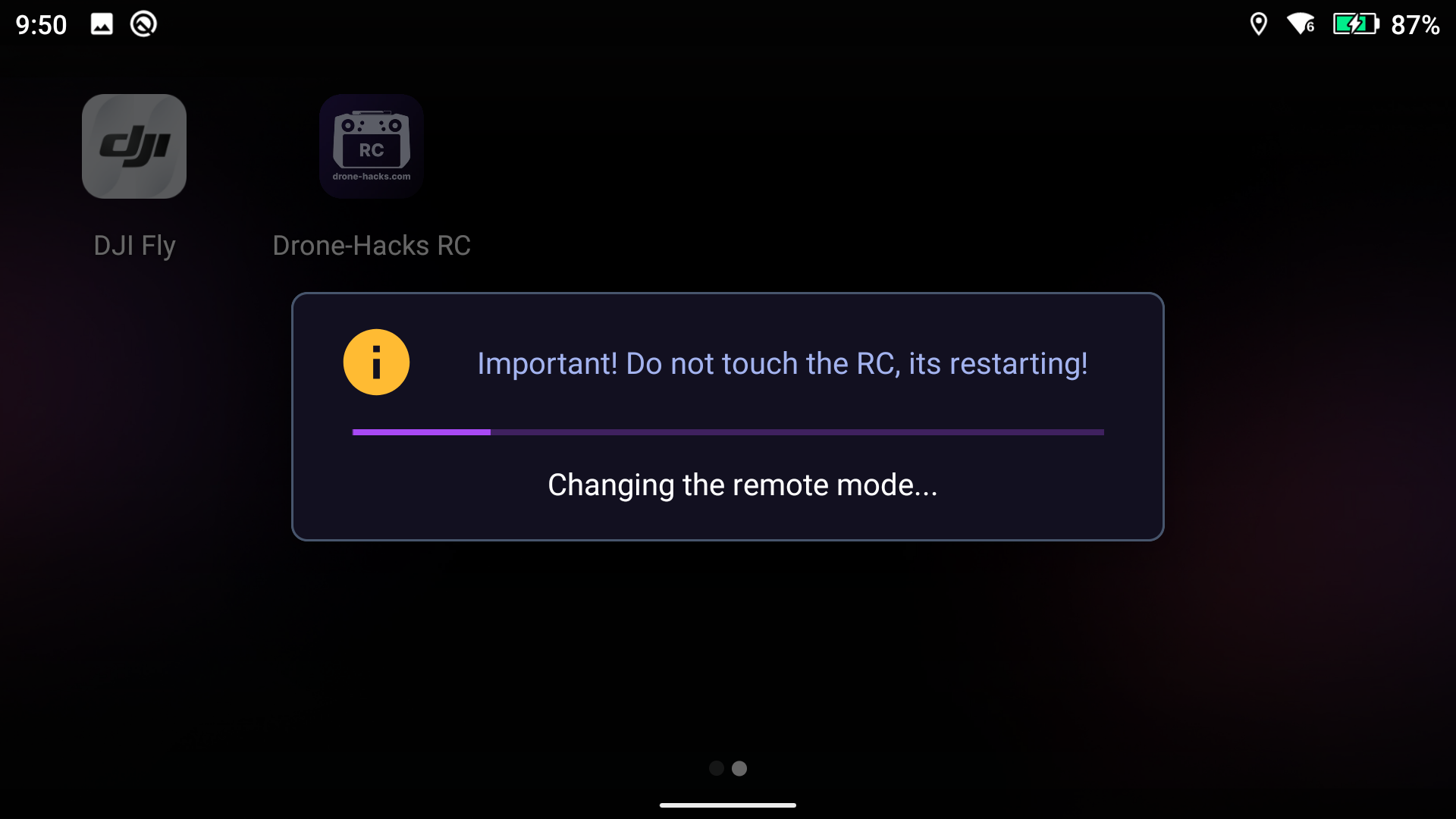 To switch between those two applications, drop back to the home screen on your RC by exiting the DJI Fly app if it has opened and tap on the “Drone-Hacks RC” app.