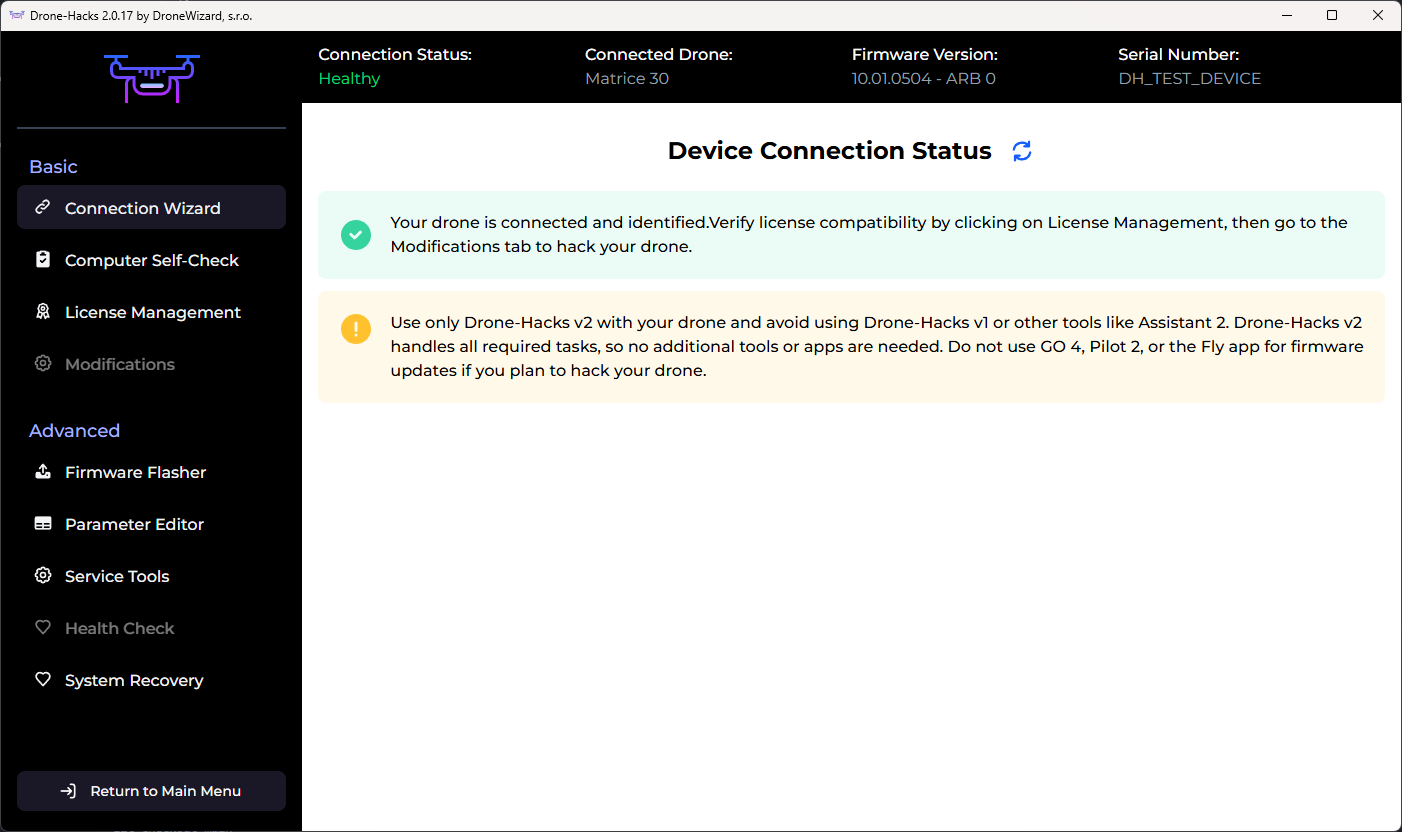 Drone-Hacks V2 now supports the Matrice 30, this page will show you the exact steps you need to perform to apply the license and hacks to your drone.